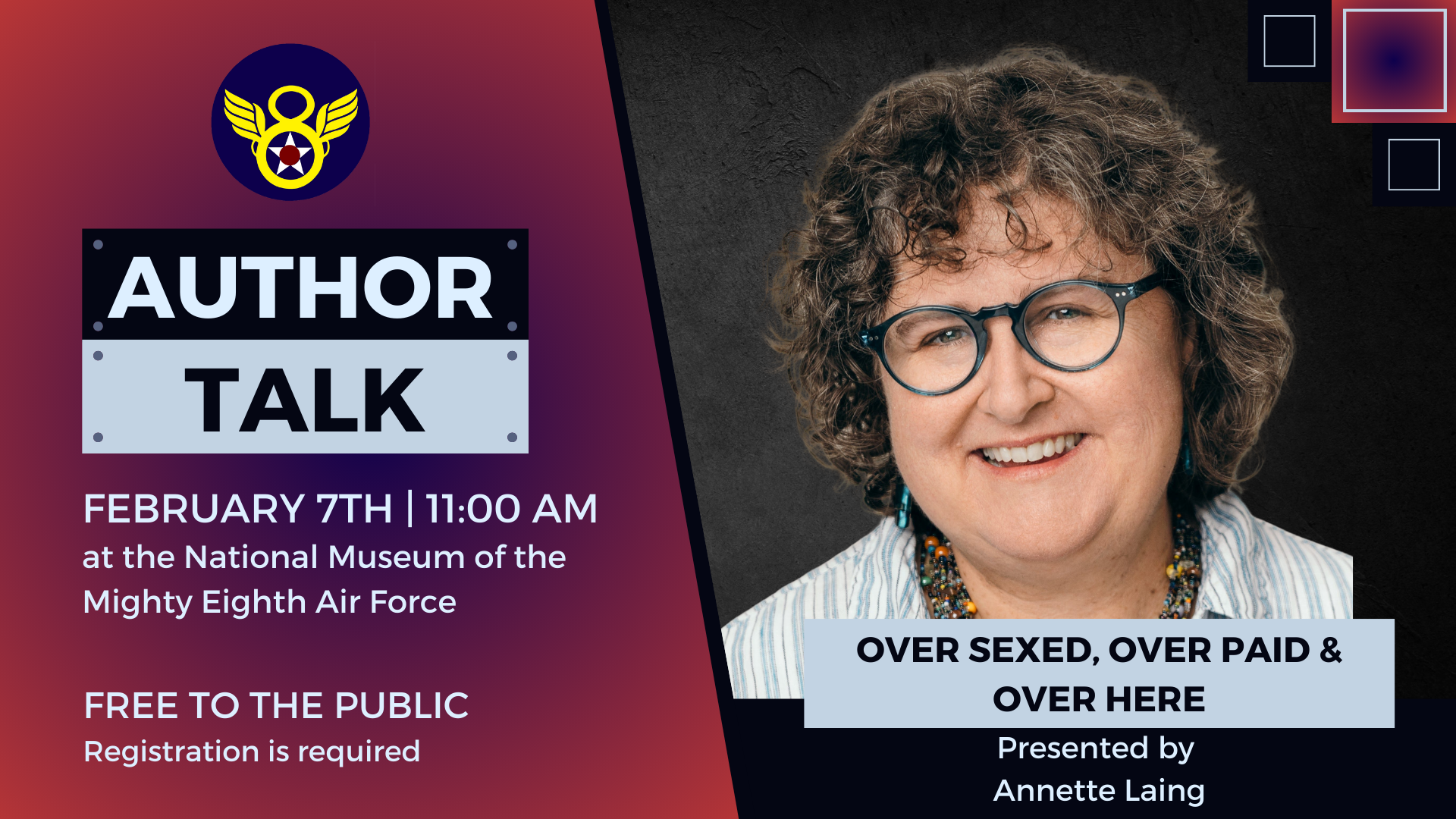 The National Museum of the Mighty Eighth Air Force's monthly Author Talk series is proud to present author Annette Laing, who will be discussing Oversexed, Overpaid, and Over Here? Britain hosts American servicemen during WWII. This program will take place on February 7th at 11:00 am at the museum.
