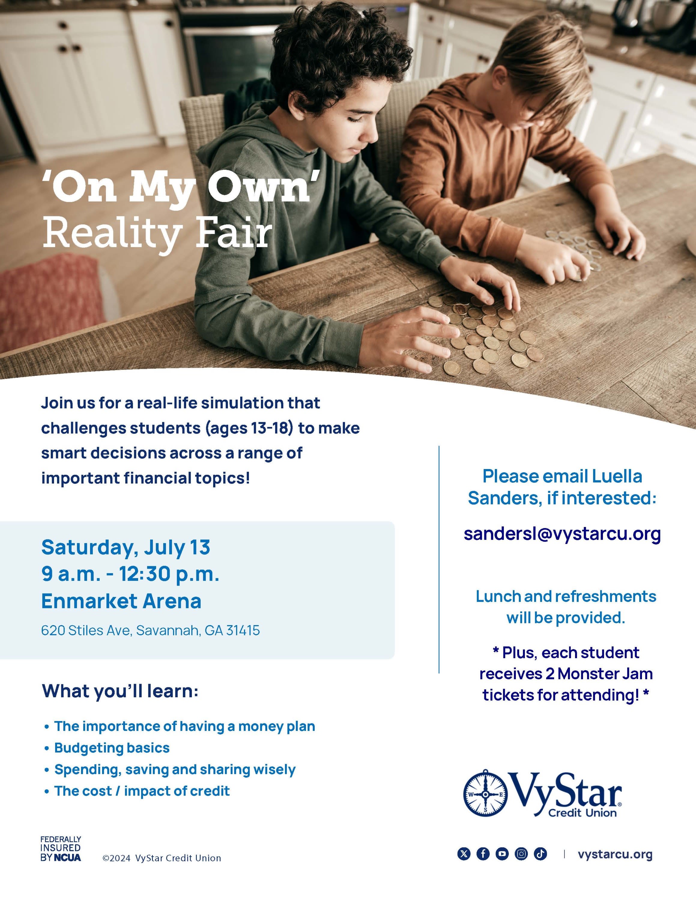 Join us for a real-life simulation that challenges students (ages 13-18) to make smart decisions across a range of important financial topics!