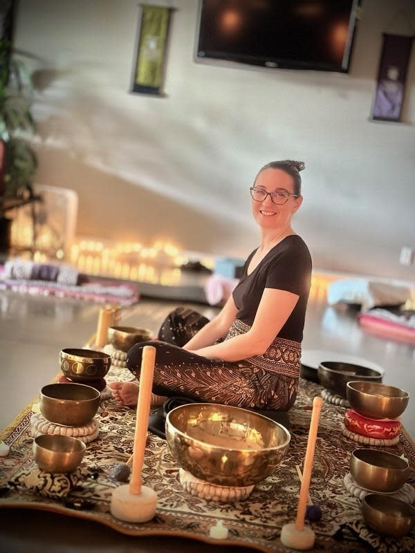 Join Rachel for a deeply restorative Sound Bath + Yoga Nidra, a full-body listening experience designed to help your mind and body unwind. You’ll begin with gentle seated stretches to release tension, then settle into stillness supported by props. As Rachel guides you through yoga nidra, the sounds of crystal singing bowls, chimes, and other instruments wash over you, helping the nervous system move from stress to calm.